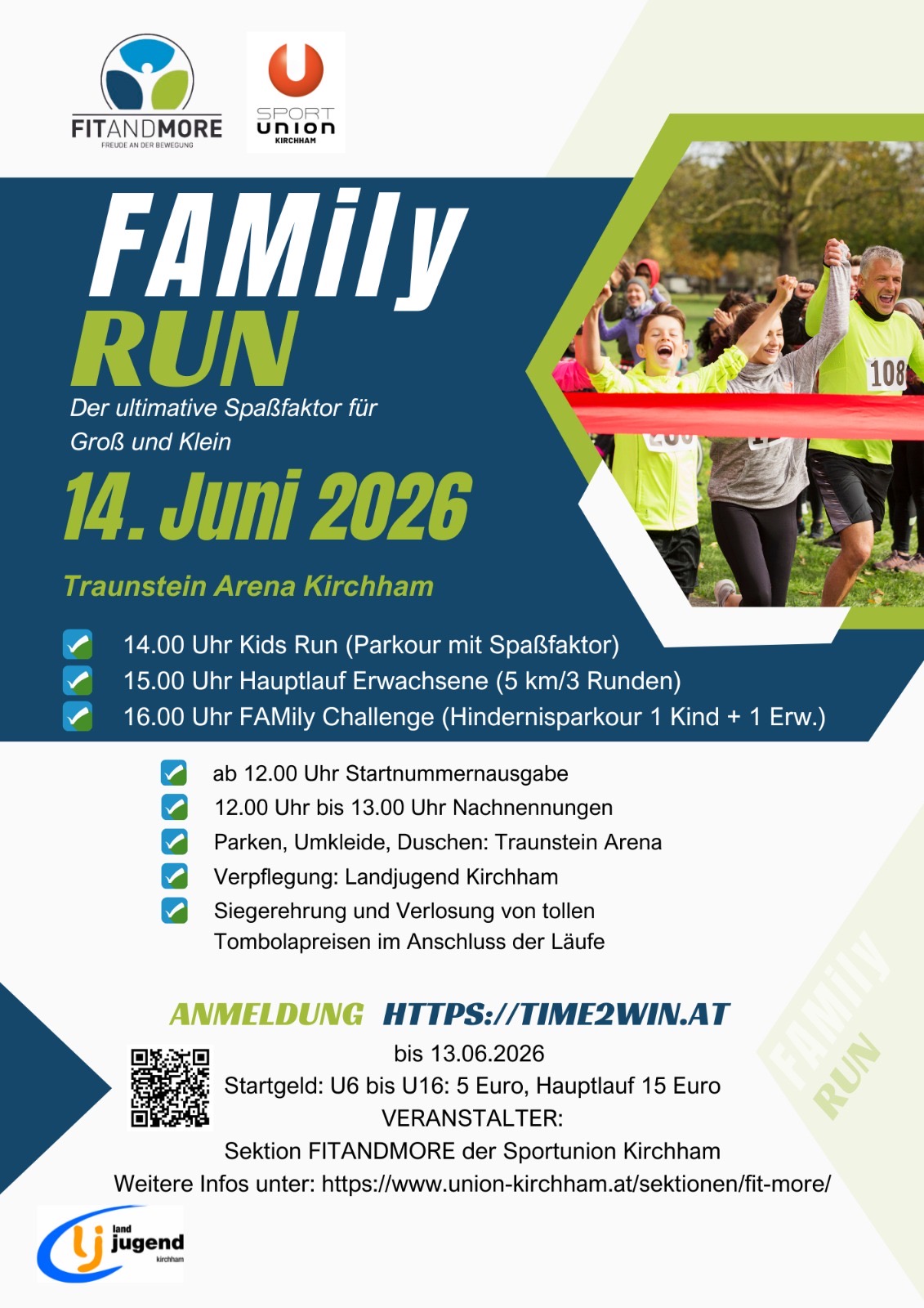 Am 14. Juni 2026 findet zum 1. Mal der Kirchhamer FAMily Run statt – die Laufveranstaltung für Groß und Klein. Sei dabei und melde dich an!