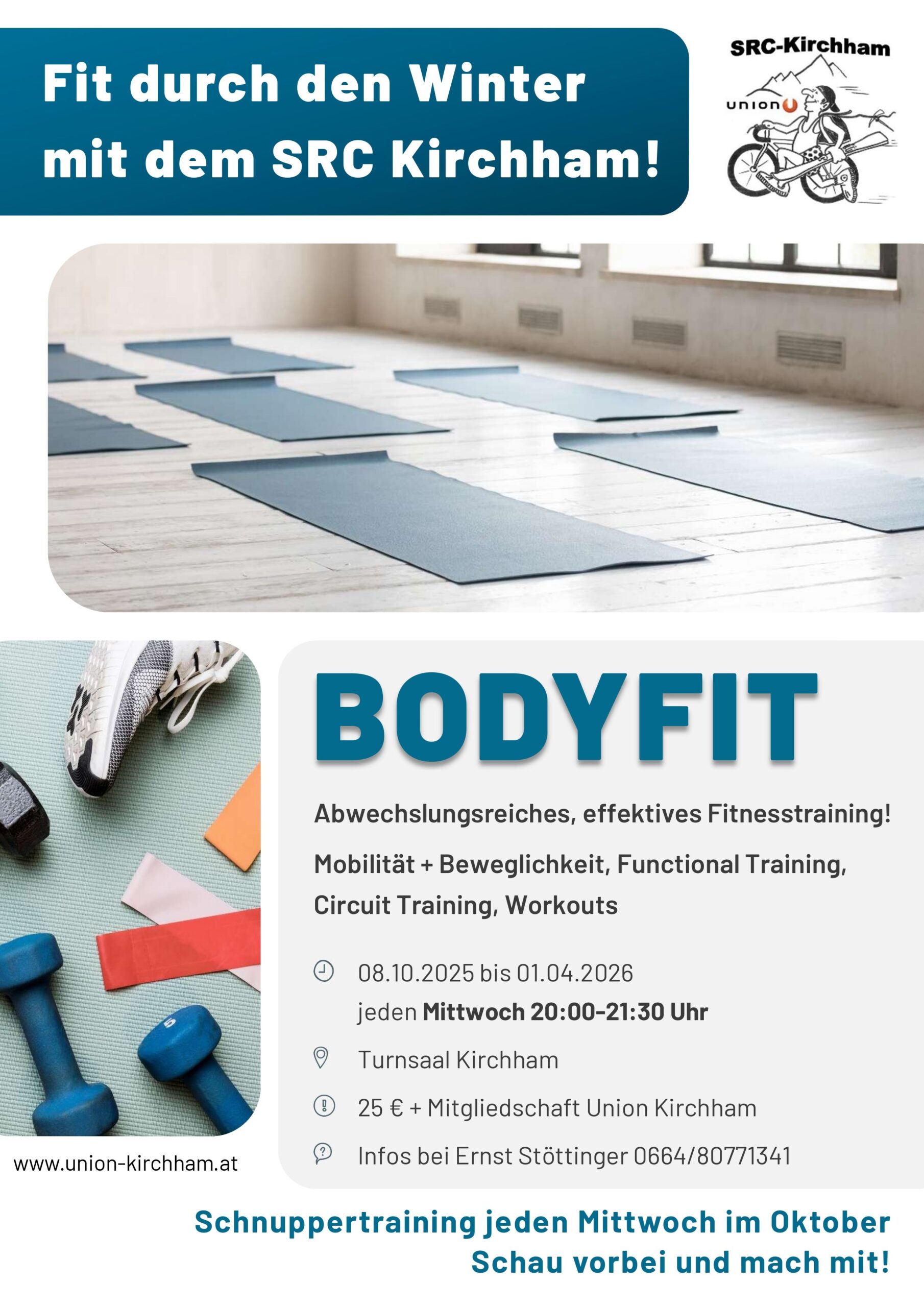 Fit durch den Winter – Hallentraining im Turnsaal Kirchham von Oktober bis April, jeden Mittwoch ab 20.00 Uhr